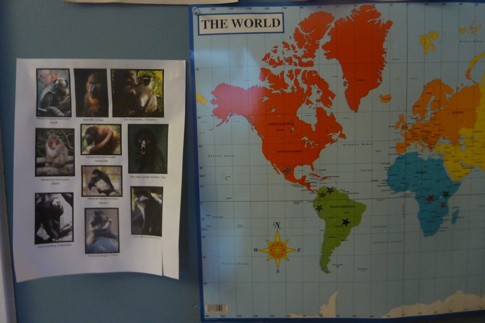 We found the countries where various monkeys live and marked them on the map.